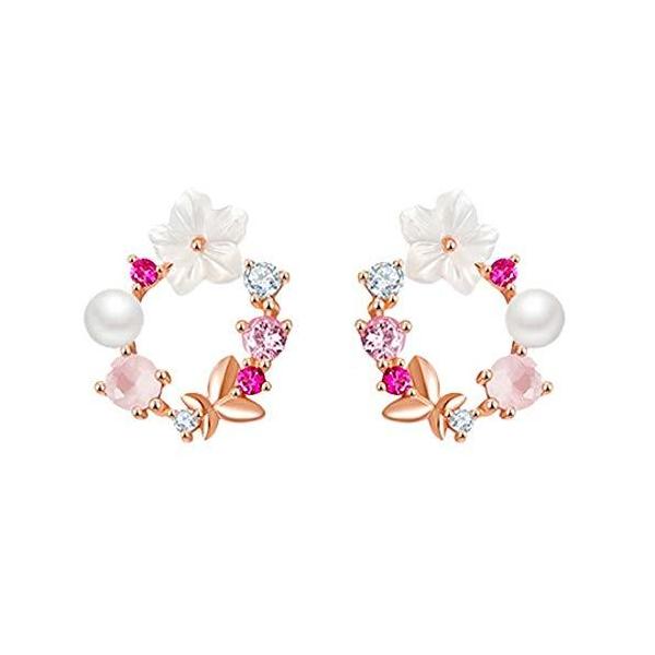 Amazon ピアス レディース イヤリング レディース ピアス 人気 かわいい 花模様 金属 デートや結婚式やプレゼントに ピンク ネックレス 通販
